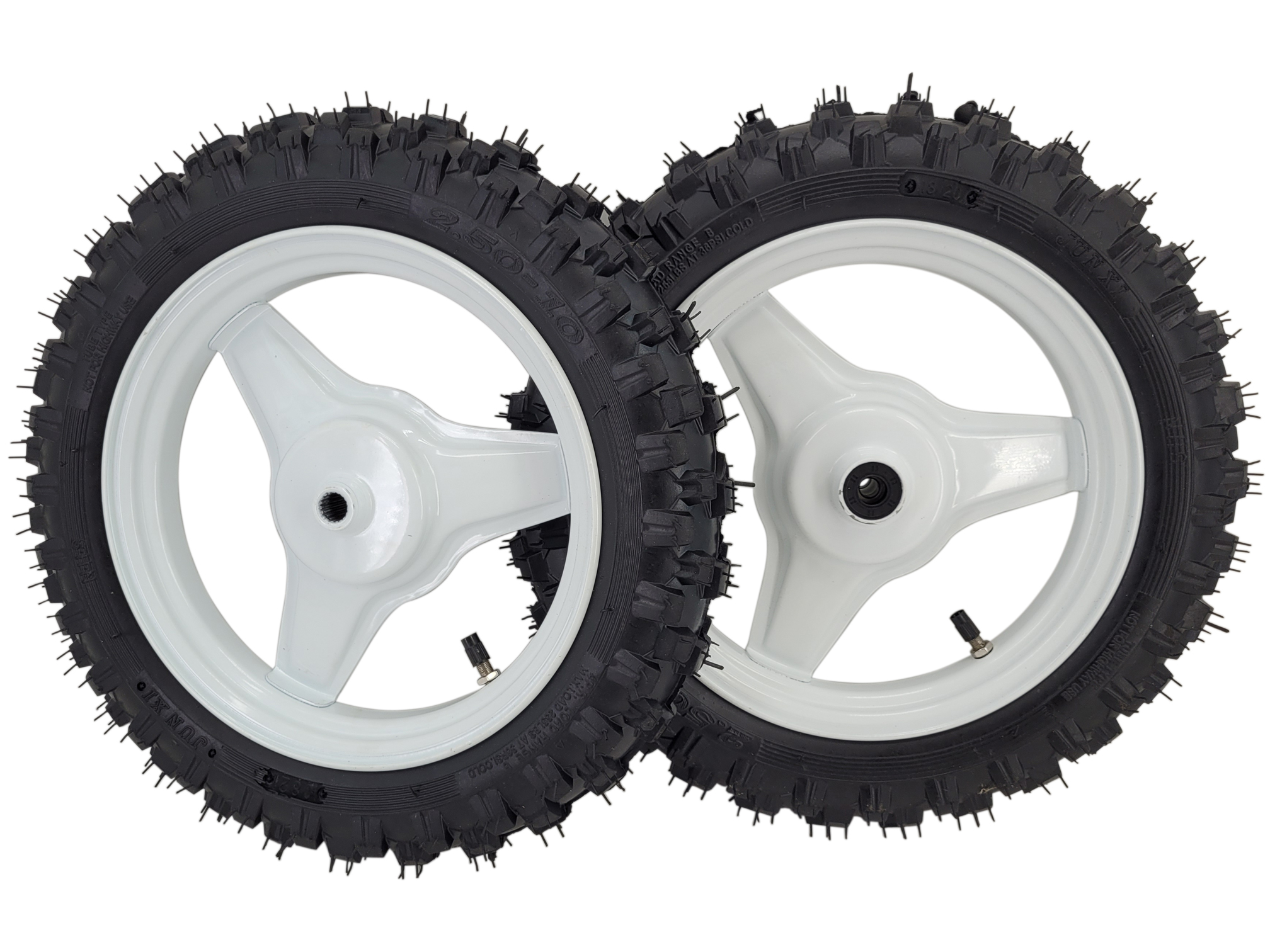 Nuestra tienda le ofrece este par de ruedas delanteras + traseras blancas para su Yamaha PW 50